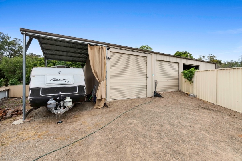 - And here's the best part, an 18m x 7m powered shed with remote roller doors, separate bathroom and open, skillion additions high enough to comfortably house caravans!